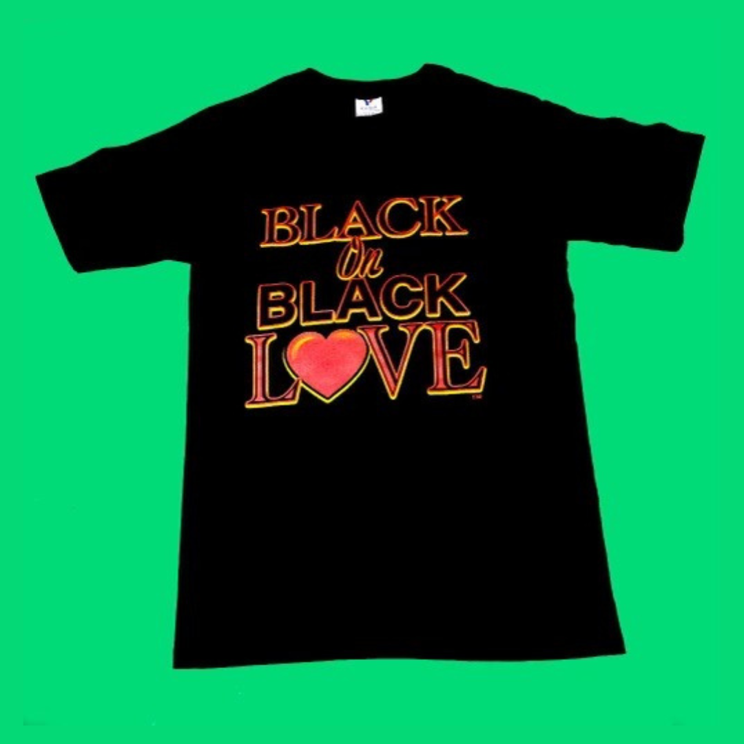 Black cotton blend short sleeve t-shirts with Red and Gold Black on Black Love design.